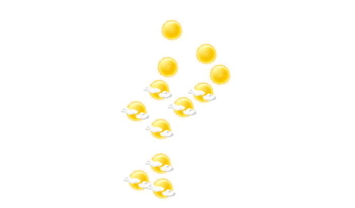 In Thoen ist es den ganzen Tag sonnig bei Werten von 21 bis zu 38°C. Nachts bilden sich vereinzelt Wolken und die Temperatur sinkt auf 20°C.