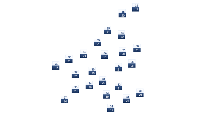 | 32 | 33 | 34 | 35 | 34 | 33 | 33 | 33 | 32 | 32 | 32 | 31 |