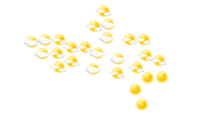 In Nong Bua wird von Tagesbeginn bis zum Nachmittag die Sonne von einzelnen Wolken verdeckt bei Werten von 22 bis zu 31°C. Am Abend ist es in Nong Bua bedeckt bei Temperaturen von 26 bis 27°C. In der Nacht ist es locker bewölkt bei einer Temperatur von 22°C.