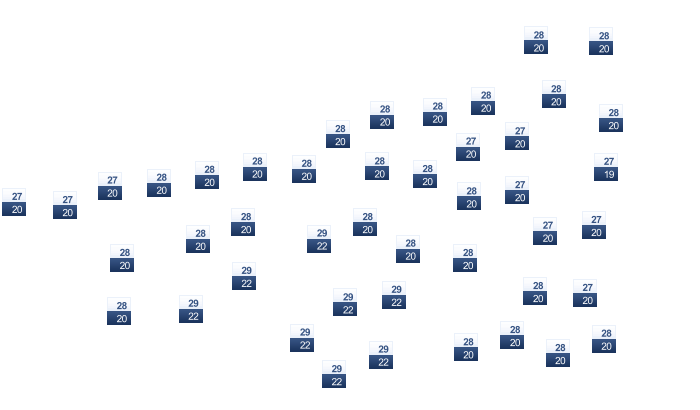 | 21 | 23 | 25 | 26 | 26 | 25 | 25 | 25 | 25 | 24 | 23 | 21 |