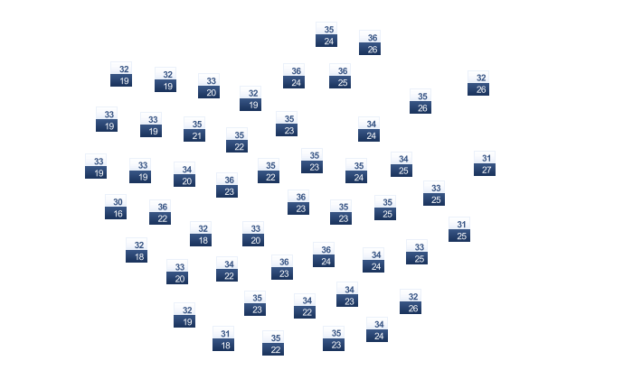 | 32 | 33 | 34 | 35 | 34 | 33 | 33 | 33 | 32 | 32 | 32 | 31 |