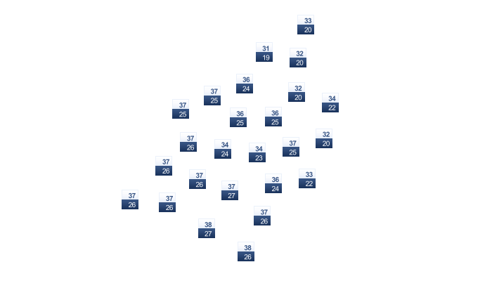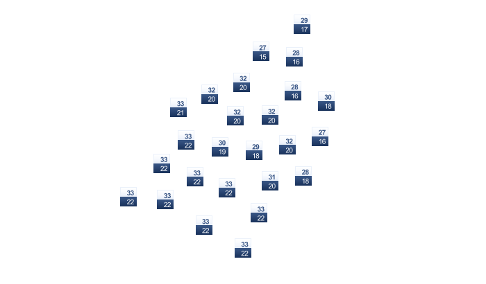 | 32 | 33 | 34 | 35 | 34 | 33 | 33 | 33 | 32 | 32 | 32 | 31 |