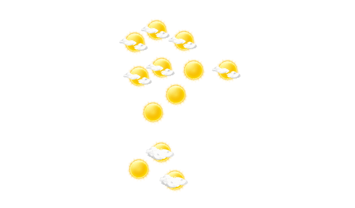 In Thalang zeigt sich von morgens bis zum Nachmittag die Sonne zwischen einzelnen Wolken bei Werten von 24 bis zu 31°C. Am Abend ist es in Thalang wolkig und die Temperaturen liegen zwischen 25 und 26 Grad. Nachts ist es wolkig bei Werten von 24°C.