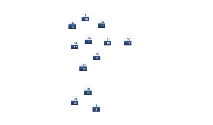 | 32 | 33 | 34 | 35 | 34 | 33 | 33 | 33 | 32 | 32 | 32 | 31 |