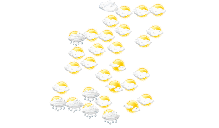 In Roi Et sind tagsüber anhaltende Schauer zu erwarten bei Werten von 24 bis zu 31°C. Nachts ist es wolkig bei Tiefstwerten von 23°C.
