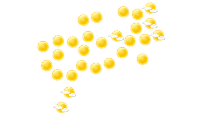 In Phra Pradaeng ist es morgens sonnig bei Werten von 25°C. Später zeigt sich die Sonne zwischen einzelnen Wolken bei Höchsttemperaturen bis zu 33°C. Am Abend gibt es in Phra Pradaeng einen wolkenlosen Himmel bei Temperaturen von 28 bis 30°C. In der Nacht ist es wolkenlos bei einer Temperatur von 25°C.