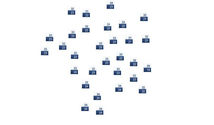 | 32 | 33 | 34 | 35 | 34 | 33 | 33 | 33 | 32 | 32 | 32 | 31 |