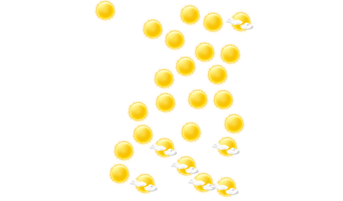 In Sanom ist es morgens sonnig bei Werten von 20°C. Später ist es vielfach wolkig, gebietsweise kann sich auch die Sonne durchsetzen und die Temperatur steigt auf 31°C. Abends überwiegt in Sanom dichte Bewölkung aber es bleibt trocken bei Werten von 24 bis zu 28°C. In der Nacht ist es überwiegend klar mit vereinzelten Wolken bei Tiefstwerten von 20°C.