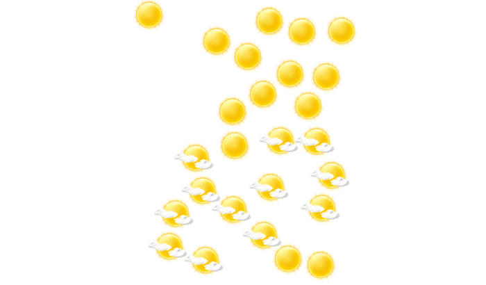 In Sanom scheint tagsüber die Sonne bei Werten von 17 bis zu 32°C. In der Nacht gibt es einen wolkenlosen Himmel bei Tiefstwerten von 19°C.