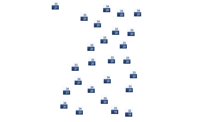 | 32 | 33 | 34 | 35 | 34 | 33 | 33 | 33 | 32 | 32 | 32 | 31 |