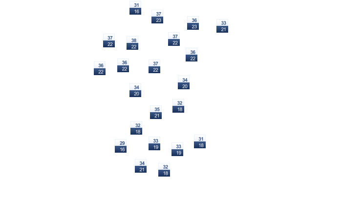 | 32 | 33 | 34 | 35 | 34 | 33 | 33 | 33 | 32 | 32 | 32 | 31 |