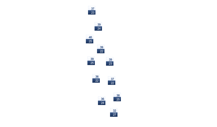 | 34 | 36 | 35 | 34 | 33 | 31 | 29 | 29 | 30 | 31 | 33 | 34 |