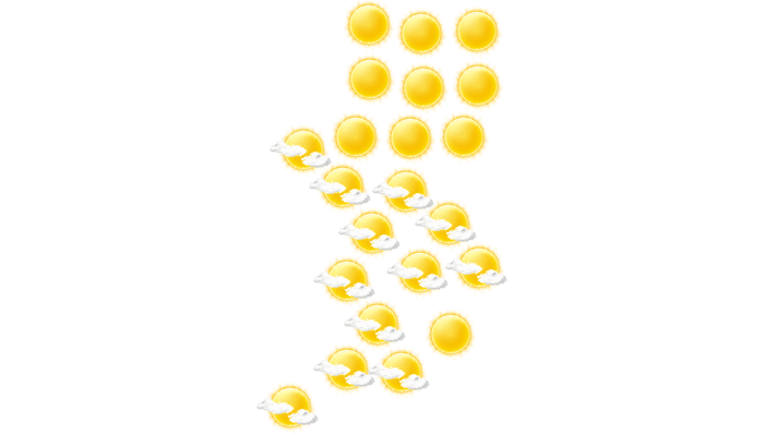 In Atakpamé ist es am Morgen sonnig bei Temperaturen von 24°C. Im weiteren Tagesverlauf bilden sich vereinzelt Wolken bei Höchsttemperaturen bis zu 37°C. Abends ist es in Atakpamé bedeckt und die Temperaturen liegen zwischen 29 und 31 Grad. Nachts ist es überwiegend dicht bewölkt bei einer Temperatur von 25°C.