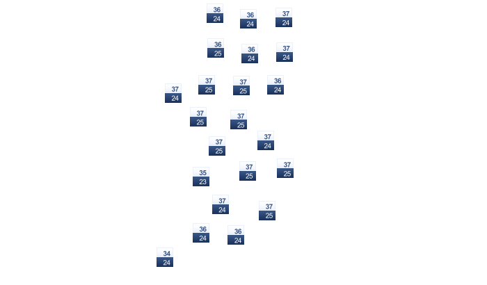 | 34 | 36 | 35 | 34 | 33 | 31 | 29 | 29 | 30 | 31 | 33 | 34 |