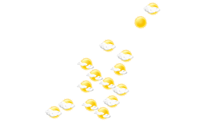 In Union gibt es am Tag ungestörten Sonnenschein bei Temperaturen von 26 bis 30°C. Nachts bilden sich leichte Wolken und das Thermometer fällt auf 25°C. Mit Böen zwischen 32 und 37 km/h ist zu rechnen.