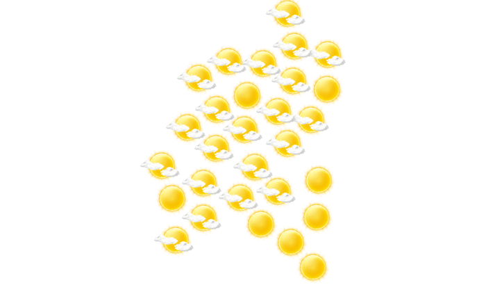 In Ati Nord verdecken morgens einzelne Wolken die Sonne bei Temperaturen von 27°C. Im weiteren Verlauf des Tages strahlt am Nachmittag und am Abend die Sonne bei Werten von 33 bis zu 40°C. In der Nacht bilden sich leichte Wolken bei einer Temperatur von 27°C.