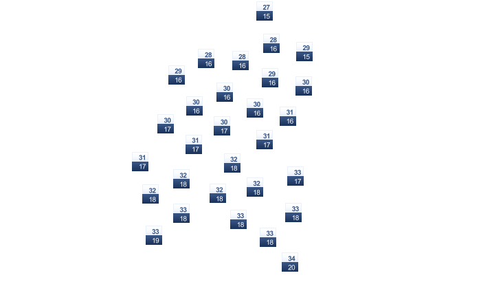 | 15 | 17 | 21 | 23 | 24 | 24 | 21 | 20 | 20 | 20 | 19 | 15 |