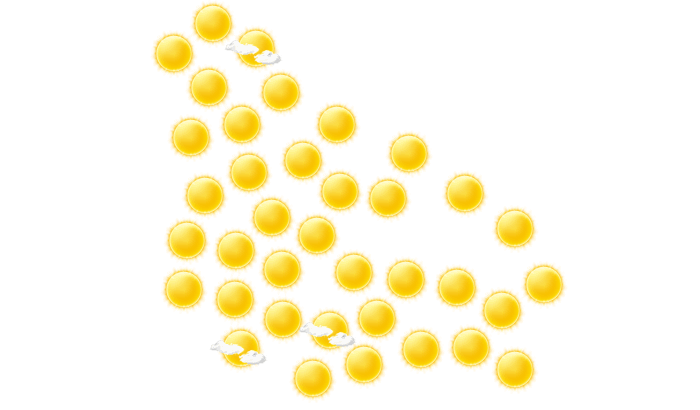 In Oun ist es den ganzen Tag wolkenlos und die Temperaturen liegen zwischen 12 und 25°C. Nachts ist es klar bei Tiefsttemperaturen von 13°C.