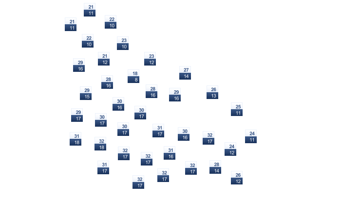 | 15 | 17 | 21 | 23 | 24 | 24 | 21 | 20 | 20 | 20 | 19 | 15 |