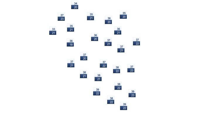 | 38 | 39 | 42 | 44 | 42 | 41 | 36 | 34 | 37 | 40 | 39 | 36 |