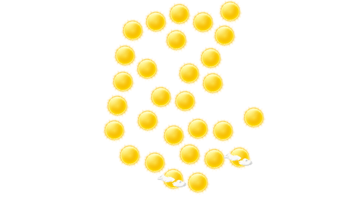 In Melfi strahlt den ganzen Tag die Sonne und die Temperaturen liegen zwischen 24 und 38°C. Nachts ist es wolkenlos und die Werte gehen auf 23°C zurück.