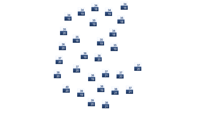 | 38 | 39 | 42 | 44 | 42 | 41 | 36 | 34 | 37 | 40 | 39 | 36 |