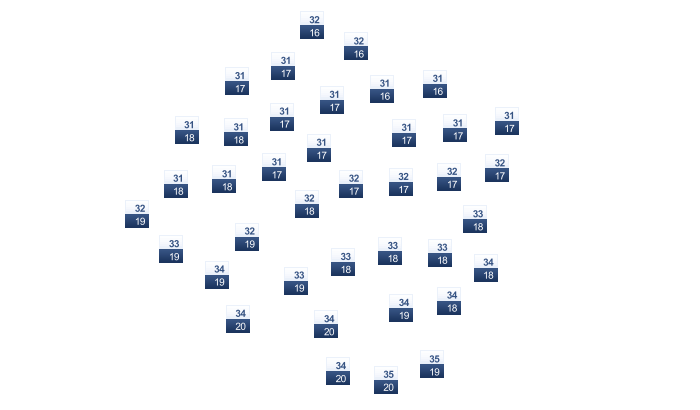 | 15 | 17 | 21 | 23 | 24 | 24 | 21 | 20 | 20 | 20 | 19 | 15 |