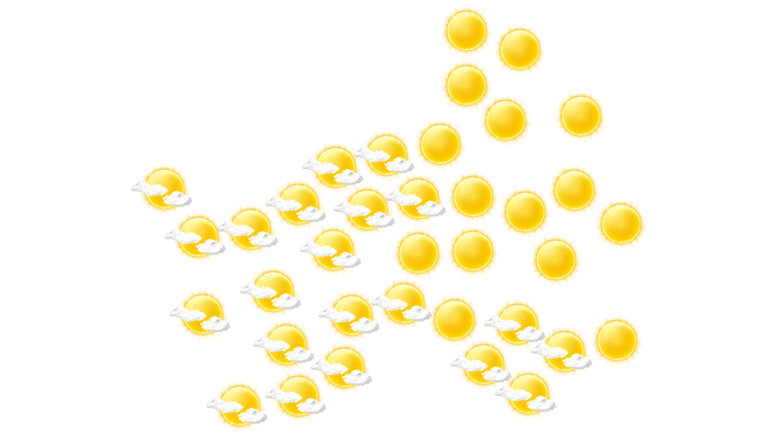 In Doba scheint den ganzen Tag die Sonne bei blauem Himmel bei Werten von 21 bis zu 38°C. In der Nacht verdecken einzelne Wolken den Himmel bei Tiefsttemperaturen von 21°C.