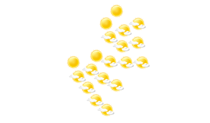 In Pala bilden sich am Morgen vereinzelt Wolken bei Werten von 18°C. Im weiteren Tagesverlauf ist es vom Nachmittag bis abends wolkenlos und die Temperaturen liegen zwischen 24 und 36 Grad. In der Nacht gibt es einen wolkenlosen Himmel bei Tiefstwerten von 19°C.