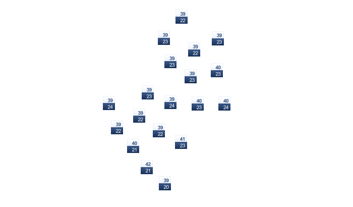 | 38 | 39 | 42 | 44 | 42 | 41 | 36 | 34 | 37 | 40 | 39 | 36 |