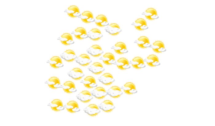 In Kyabé ist es morgens vielfach wolkig, gebietsweise kann sich auch die Sonne durchsetzen bei Werten von 23°C. Später zeigt sich die Sonne zwischen einzelnen Wolken und die Höchstwerte liegen bei 39°C. Am Abend sind in Kyabé Teile des Himmels mit Wolken bedeckt und die Temperaturen liegen zwischen 30 und 31 Grad. In der Nacht bilden sich vereinzelt Wolken bei einer Temperatur von 24°C.