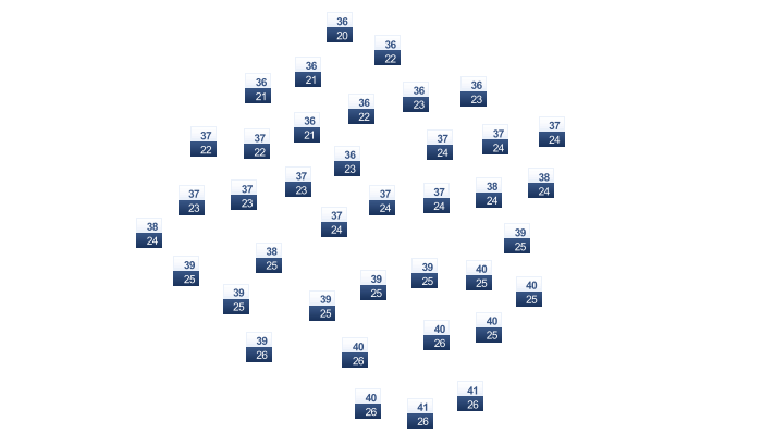 | 38 | 39 | 42 | 44 | 42 | 41 | 36 | 34 | 37 | 40 | 39 | 36 |