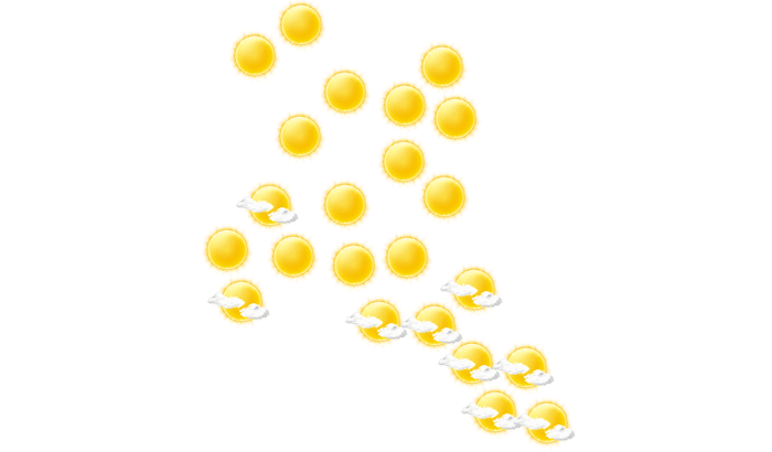 In Djédidé gibt es bis zum Nachmittag keine Wolken, die Sonne scheint und die Temperaturen liegen zwischen 18 und 34°C. Am Abend gibt es in Djédidé überwiegend blauen Himmel mit vereinzelten Wolken und die Temperaturen liegen zwischen 24 und 26 Grad. Nachts ist es leicht bewölkt bei Tiefstwerten von 19°C.