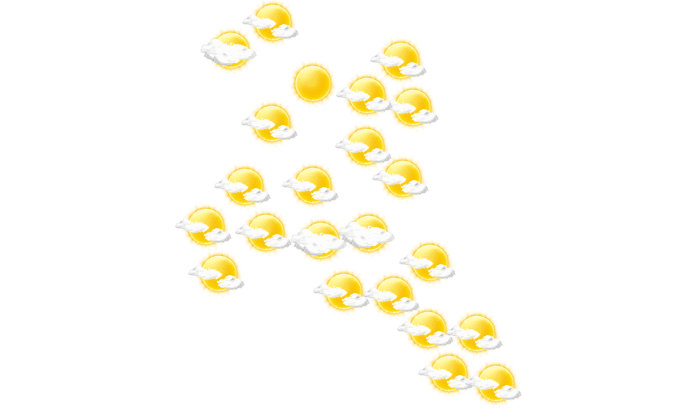 In Goz Beida zeigt sich am Morgen die Sonne nur vereinzelt bei sonst wolkigem Himmel bei Temperaturen von 26°C. Gegen später bilden sich vereinzelt Wolken bei Höchsttemperaturen bis zu 39°C. Am Abend ist es in Goz Beida bewölkt und die Temperaturen liegen zwischen 32 und 34 Grad. In der Nacht sind Teile des Himmels mit Wolken bedeckt bei einer Temperatur von 26°C.