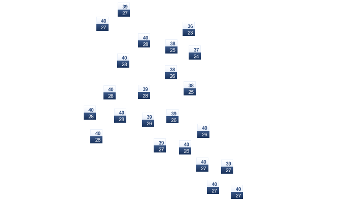 | 38 | 39 | 42 | 44 | 42 | 41 | 36 | 34 | 37 | 40 | 39 | 36 |