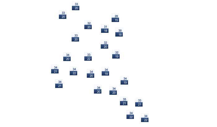 | 15 | 17 | 21 | 23 | 24 | 24 | 21 | 20 | 20 | 20 | 19 | 15 |