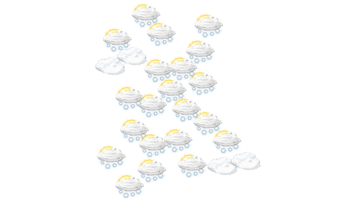 In Nachod kommt es tagsüber zu Schneefällen bei Werten von -1 bis zu 0°C. In der Nacht bleibt es bedeckt bei Tiefsttemperaturen von -1°C. Böen können Geschwindigkeiten zwischen 10 und 25 km/h erreichen.