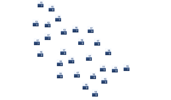 | 1 | 3 | 7 | 13 | 16 | 20 | 22 | 23 | 17 | 12 | 7 | 3 |