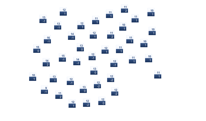 1 | 3 | 7 | 13 | 16 | 20 | 22 | 23 | 17 | 12 | 7 | 3 |