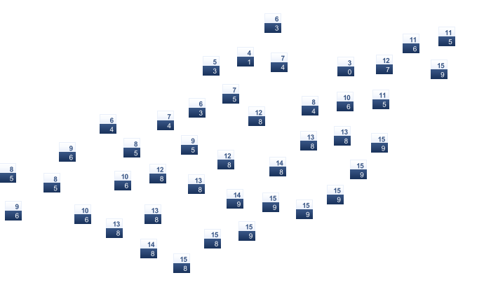 | 5 | 6 | 8 | 11 | 15 | 19 | 22 | 22 | 19 | 15 | 10 | 6 |