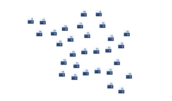 | 14 | 16 | 19 | 23 | 28 | 32 | 34 | 35 | 33 | 29 | 23 | 17 |