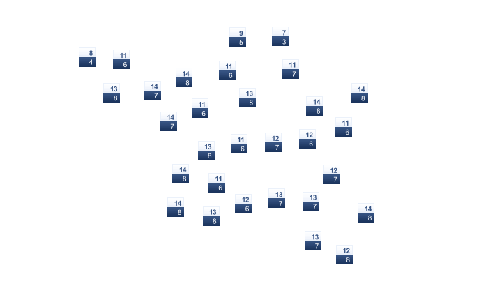| 5 | 6 | 8 | 11 | 15 | 19 | 22 | 22 | 19 | 15 | 10 | 6 |