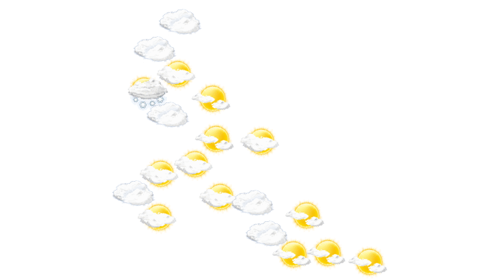 In Ardahan ist es den ganzen Tag vielfach wolkig, gebietsweise kann sich auch die Sonne durchsetzen bei Temperaturen von -3 bis 3°C. Nachts ist es überwiegend dicht bewölkt bei Tiefsttemperaturen von -4°C. Böen können Geschwindigkeiten zwischen 5 und 18 km/h erreichen.