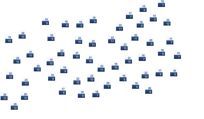| 5 | 6 | 8 | 11 | 15 | 19 | 22 | 22 | 19 | 15 | 10 | 6 |