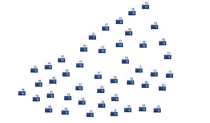 | 5 | 6 | 8 | 11 | 15 | 19 | 22 | 22 | 19 | 15 | 10 | 6 |