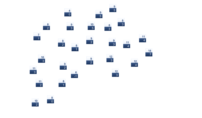 | 14 | 16 | 19 | 23 | 28 | 32 | 34 | 35 | 33 | 29 | 23 | 17 |