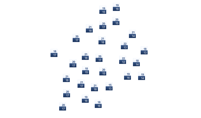 | 14 | 16 | 19 | 23 | 28 | 32 | 34 | 35 | 33 | 29 | 23 | 17 |