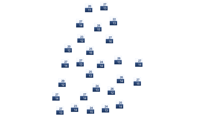 14 | 16 | 19 | 23 | 28 | 32 | 34 | 35 | 33 | 29 | 23 | 17 |