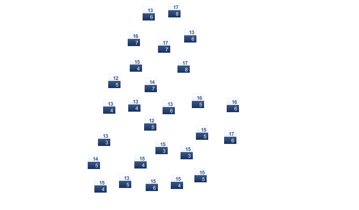 | 14 | 16 | 19 | 23 | 28 | 32 | 34 | 35 | 33 | 29 | 23 | 17 |