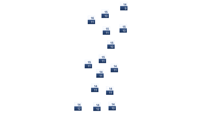 | 14 | 16 | 19 | 23 | 28 | 32 | 34 | 35 | 33 | 29 | 23 | 17 |